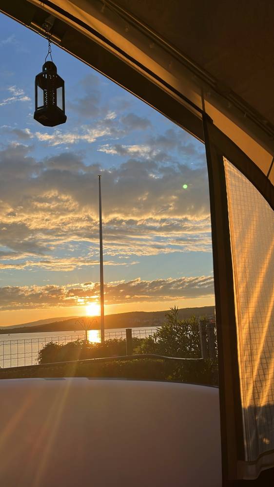 Erste Reihe kostet 5 Euro Aufpreis, lohnt sich aber für den Blick aufs Meer! Und Sonnenaufgang!!!