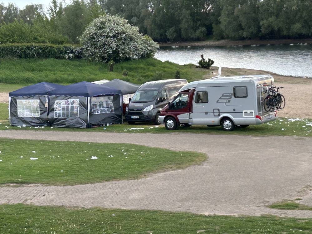 Schöner Stellplatz in erster Reihe am Rhein. Steckdosen gibt es eigentlich genügend aber je nachdem wo man steht, muss das Stromkabel ca. 80 m lang sein.