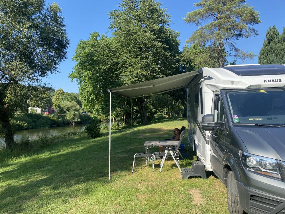 Leider nur für eine Nacht. Schöner Platz an der Nims, ruhig und mit wunderbarer Abendsonne, großzügigem Stellplatz zwischen Dauercampern. Die 300er Stellplätze sind am schönsten aber rar . Sehr freundlicher Betreiber.