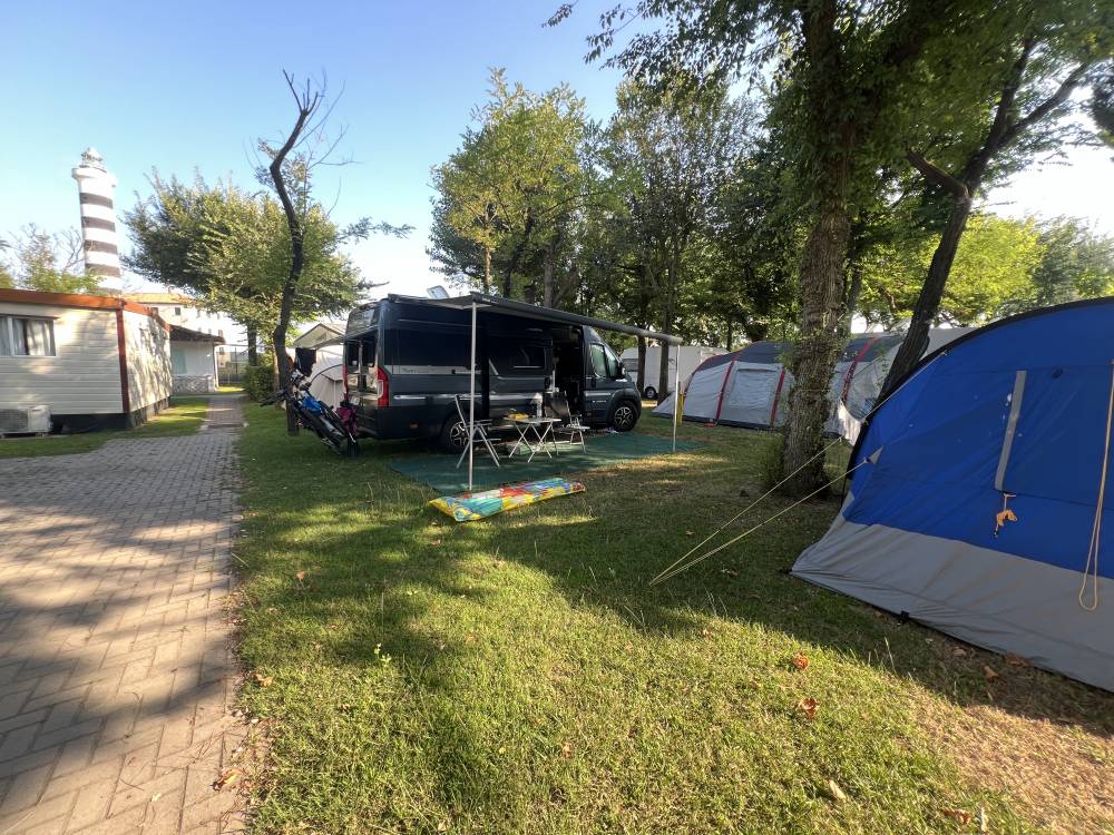 Die freundliche ältere Dame an der Rezeption sprach leider ausschließlich italienisch, mit einer Übersetzer-App gelang die Kommunikation aber, auch wenn sie Standard-Ausdrücke, wie Camperservice, nicht verstand.