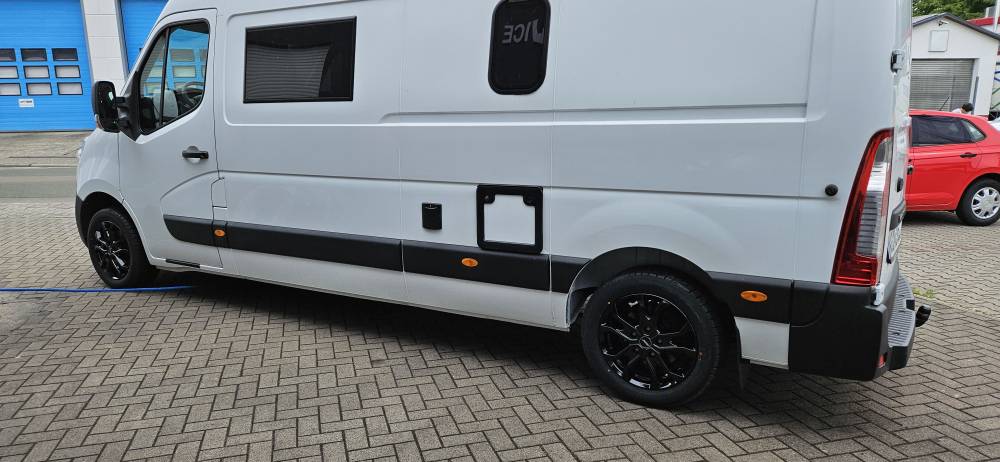 Beleuchteter Stellplatz, innerorts mit Restaurants und Einkaufsmöglichkeiten,