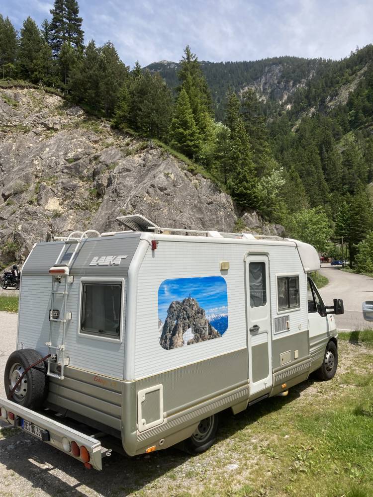 Bei der Einfahrt auf den Platz empfing mich ein blaues Schild mit einem Wohnmobil drauf, was darauf hinweist, das es sich um einen Stellplatz handelt.